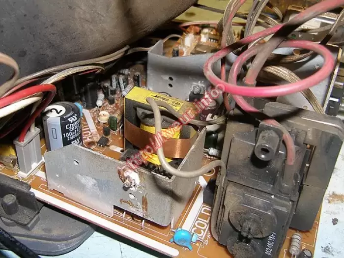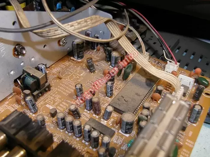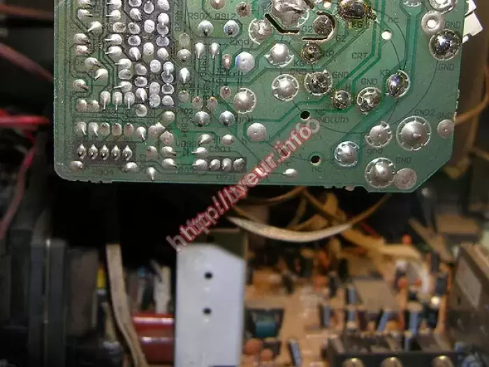 При подобной неисправности телевизоров проблему следует искать в блоке питания или в модуле кадровой развертки. В данном случае ремонт телевизоров был осуществлен в БП и состоял в замене некоторых нерабочих транзисторов и микросхем.