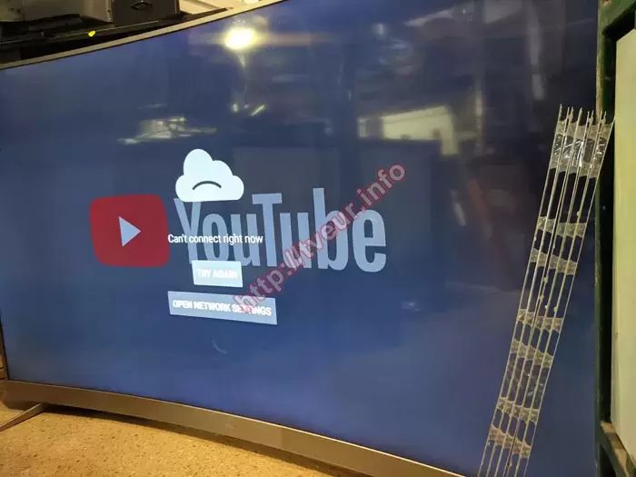 К нам поступил неисправный телевизор с изогнутой матрицей TCL U65P6096, у которого отсутствует подсветка матрицы, при включении он тухнет. Учитывая многолетний опыт работы и «симптомы» неисправности, предположительно потребуется ремонт ЛЕД подсветки, при этом, насколько сложным он окажется, можно будет судить после проведенной диагностики. Клиент рассказал на приемке, что этот телевизор приобретен в 2017 году и выходить из строя второй раз. Он также принес в мастерскую оригинальную подставку под телевизор и крепление. При включении в мастерской подсветки матрицы тоже не было, она была темного цвета.