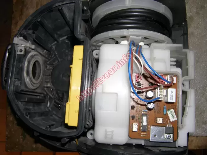 Сломался пылесос для сухой уборки Samsung SC7215, у него при работе появился сильный гул и треск, также слышен запах горелого, не закрывается крышка отсека для мешка. Пользователю необходимо, чтобы ремонт пылесосов был сделан в срочном порядке. Наши мастера всегда идут навстречу своим клиентам, поэтому устройство взято в работу. Эта модель с хорошей потребляемой мощностью 1600 Вт, предназначена для выполнения сухой уборки. Мощность регулируется с помощью регулятора на рукоятке, а радиус действия составляет 9 метров. Внешнее состояние устройства удовлетворительное, хотя непосредственно сам корпус целый, чистый и без механических повреждений. Внутри пылесос сильно запылен (последствия уборки строительной пыли). Такая неправильная эксплуатация привела к тому, что требуется замена двигателя VCM-K50HU 83BL200619, который вышел из строя и восстановить работу которого не возможно. В итоге ремонт пылесосов направлен на замену нового двигателя «SAMSUNG» VCM-K50HU (можно посмотреть на фото № 4). Наряду с этим сделана реставрация кнопки открытия крышки, чистка всего пылесоса. Это был сложный и дорогостоящий ремонт, при этом результативный, поскольку теперь устройство работает отлично. Заказчик предупрежден о том, что убирать строительный мусор, включая цемент ним нельзя.