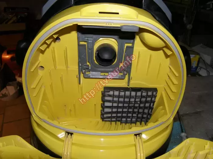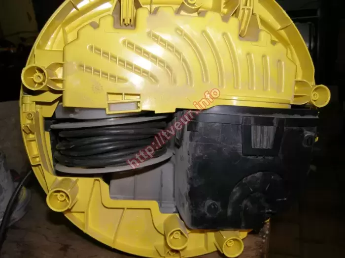 Как показывает практика, если в пылесосе при включении появился сильный гул, слышен треск и запах горелого, значит пришло время выполнять ремонт пылесосов в сервисном центре. Именно с такой неисправностью поступила модель Karcher VC 6300 (KARCHER VC 6), которая предназначена для выполнения сухой уборки. Внешне пылесос выглядит хорошо, его корпус без каких-либо механических повреждений, краска не потертая, на нем нет царапин. При этом внутри он весь в строительном мусоре, в двигателе развалились подшипники, фильтры очень сильно забиты, что не допустимо. Эта бытовая техника наделена потребляемой мощностью 2000 Вт. Комфортная рукоятка имеет регулятор силы всасывания, более того, задаваемая мощность будет отображаться светодиодным индикатором, который расположен на корпусе и отлично виден на большом расстоянии. Также в рукоятке встроен выключатель, дополненный функцией Stand-by. Это дает возможность отключить пылесос на время перерыва в работе. После проведенной программы диагностики сделан вывод, что без замены двигателя обойтись не получится. Это значит, что ремонт пылесосов будет дорогим, поэтому об этом сообщено заказчику. После его согласия заказан и заменен новый двигатель «BOSCH» ICL-F 00537, выполнена чистка пылесоса. После такого ремонта устройство работает отлично. В дальнейшем использовать только для уборки квартиры, цемент или другой строительный мусор не убирать!