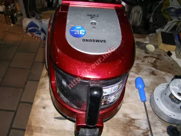 В контейнерном пылесосе Samsung SC-6570 при включении появился сильный гул, слышен запах горелого. Как объяснил заказчик, пылесос использовали во время проведения ремонта, после уборки строительного мусора начала проявлять себя данная проблема. Он попросил, чтобы был сделан ремонт пылесосов, а также заменен предмоторный фильтр. Данная компактная модель без мешка для сбора пыли, наделена контейнером емкость которого 1,4 литра и высокой мощностью 1800 Вт. Благодаря технологии Twin Chamber System сохраняется высокая мощность всасывания даже в том случае, если пылесборник окажется заполненным. Дистанционное управление пылесосом расположено на рукоятке, имеется дополнительная насадка Pet Brush, с помощью которой уборка будет простой и комфортной. Состояние пылесоса удовлетворительное, горят роторные катушки, подшипники развалились, все фильтры пришли в негодность (фото № 4 и 5). Это результат уборки цемента. В данном случае ремонт пылесосов состоял в замене нового двигателя Samsung VCM-K70GU 1800W (см. фото № 6), поскольку восстановить работоспособность старого не было возможности. Также заменен новый входной НЕРА фильтр. Сделана чистка пылесоса. После такого сложного и дорогостоящего ремонта, использовать устройство строго по назначению, цемент или любой другой строительный мусор больше не убирать.
