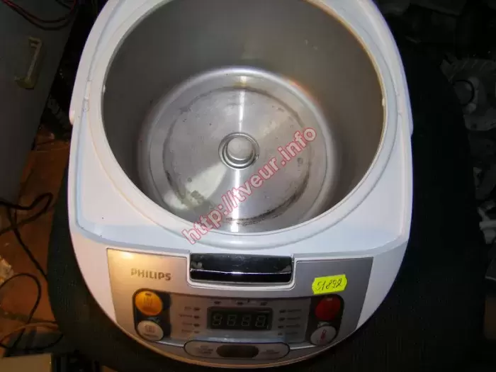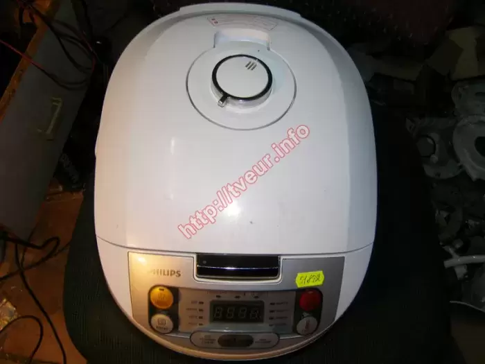 Мультиварка Philips HD3036/03 вышла из строя, при включении в сеть она выдает ошибку E4, с такой неисправностью она доставлена в сервисный специализированный центр. Наши мастера берутся за любой, даже самый сложный ремонт мультиварок, поэтому она принята в работу. Это устройство отличается не только стильным внешним видом, но также высокими техническими характеристиками. Благодаря 3D системе нагрева, которая расположена по всему корпусу устройства, нагревательные элементы сверху, вокруг и основной элемент на дне начинают греть одновременно, создавая равномерный нагрев. Мощность этой кухонной техники 980 Вт, а объем чаши - четыре литра. У мультиварки с электронным управлением имеется 12 автоматических программ приготовления, таймер отсрочки на 24 часа, а также функция пароварки. Прежде чем браться за любой ремонт мультиварок, необходимо было точно определиться с неисправностью. Как оказалось состояние прибора хорошее, при этом образовались сухие пайки, произошел обрыв провода термодатчика в крышке, на дне видны потеки. Кроме того, проведенная диагностика подтвердила, что проблема состоит в платах питания и управления, также плохо работает крышка. С такой поломкой ремонт был направлен на ее устранение. Для этого сделана пропайка вышедших из строя плат питания и управления, восстановлено соединение термодатчика в крышке, после чего мультиварка работает отлично. На будущее пользователь предупрежден о том, что нельзя допускать попадания любой жидкости на дисковый нагреватель, иначе он прогорит.