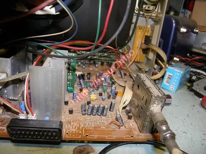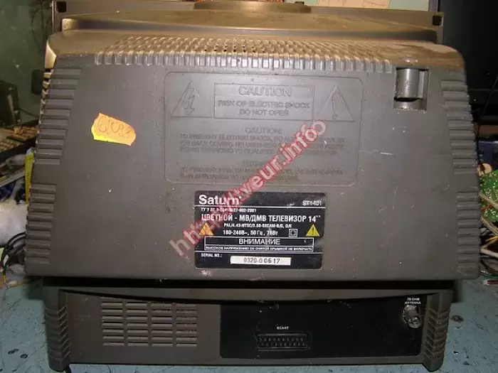 В устаревшем кинескопном телевизоре с экраном 37 см при включении зеленый экран, пользователю необходим ремонт телевизоров в сервисном центре. После проведенной диагностики выяснили, что проблема в плате кинескопа, которую необходимо было отреставрировать. Для выполнения такого ремонта потребовалась замена панели кинескопа, других пассивных элементов. Телевизор работает хорошо, но если впоследствии снова позеленеет экран — соответственно проблема состоит в самом кинескопе (утечка зеленого катода), тогда актуальной станет его замена.