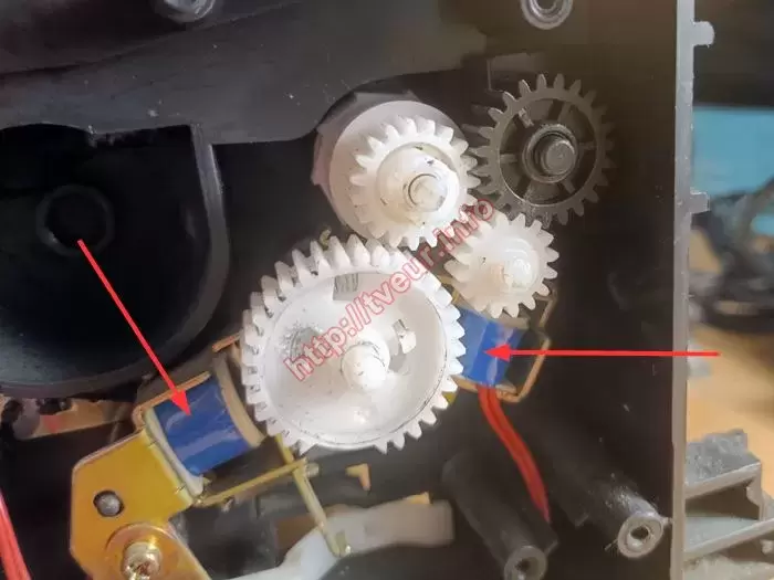 - Снять все шестеренки, что позволит отсоединить и вытащить соленоид.