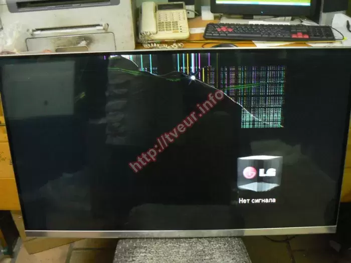 На матрице современного телевизора могут появляться самые разные механические повреждения, если с ним не правильно обращаться. Матрица является самым уязвимым местом в любом телевизоре, поэтому вследствие ударов, падений, толчков или сильных нажатий, на ней могут появляться трещины и другого рода изъяны. При этом итог один - требуется дорогостоящая замена. Поскольку мы знаем, где купить матрицу для телевизора LG, принят в работу 42-дюймовый LED телевизор LG 42LM670T, у которого пробит экран. Этот 3D телевизор, который собран в 2012 году (Польша), наделен такими особенностями: наличие функций Smart TV и Wi-Fi, функции «Машина Времени» (запись на внешний накопитель), угол обзора 178°/178°, использование мощного процессора изображенияTriple XD Engine и др. У телевизора пробита матрица и в этом месте образовалась достаточно крупная дырка. Вокруг нее много очень маленьких трещинок и еще несколько длинных трещин. Одна из которых заканчивается возле верхней рамки. Над трещиной вертикальные цветные полосы. Вправо от места удара образовалось большое растровое пятно, состоящее из многочисленных пересекающихся цветных линий. Прямо под пятном осталась светиться заставка. В данной ситуации очень важно, где купить матрицу для телевизора LG, поскольку она должна быть нужной модели и версии. Также учитывается размер диагонали. Мы купили подходящую панель, сняли разбитую и установили на ее место новую. Для этих целей использовали специальную оснастку. После всех последующих настроек изображение на экране отличного качества.