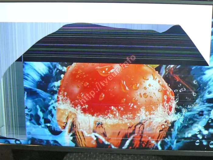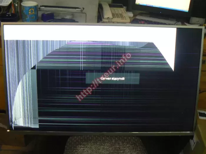 В сервисную мастерскую поступил современный ЖК LED телевизор (собран в 2018 году) - Bravis UHD-43G7000 Smart, у которого на 43-дюймовом экране многочисленные дефекты после того, как по чистой случайности в него попали из пневматического пистолета. Как результат, требуется срочная замена экрана на телевизор, которая может быть выполнена исключительно в стационарных условиях сервисного центра. Данная «умная» модель наделена самыми прогрессивными технологиями, в число которых входит Smart TV (Операционная система Android 6.0), встроенный Wi-Fi модуль и др. Со слов заказчика, телевизор куплен совсем недавно, он в отличном состоянии, не считая испорченной матрицы. От сильного удара, который пришелся в нижний левый угол, образовалась небольшая дырочка, в разные стороны от которой короткие трещины, еще одна очень длинная глубокая трещина прошла через весь экран (отлично видно на фото № 1). В выключенном состоянии панель как бы поделена на участки, вдоль верхней рамки широкая полоса белого цвета. Левая сторона серо-белого цвета, остальной экран черный. По всему экрану, кроме белой полосы, многочисленные вертикальные и горизонтальные линии. Посередине светится заставка «Сигнал Відсутній». Во включенном состоянии, видна часть изображения (см. фото № 2). Нами выполнена результативная замена экрана на телевизор, с учетом всех характеристик, включая Smart TV (фото № 4). После замены сделаны все необходимые настройки. Пользователю выдана гарантия.