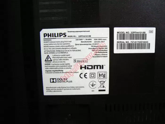 Не правильная, не аккуратная эксплуатация современных телевизоров с тонкими и хрупкими матрицами, приводит к тому, что требуется сложный и дорогостоящий ремонт по ее замене. Именно по такой причине доставлен ультратонкий LED телевизор Full HD - Philips 32PFH4101/88, у которого поврежден 32-дюймовый экран. Пользователь попросил, чтобы была выполнена срочная замена матрицы 32 дюйма. Данная модель, собранная в Польше в 2017 году, ранее не вскрывалась, поскольку это первая ее поломка. По причине удара по экрану (посередине, над логотипом), матрица пробита. От этого места в разные стороны много трещин разной длины. От трещин вверх многочисленные разноцветные полосы. Кроме того, на матрице под ударом, много горизонтальных полос, чуть выше они еле просматриваются. Вниз от удара появилась желтая пунктирная линия. В целом состояние этого телевизора хорошее, на задней стенке имеются все этикетки с информацией о данной модели. Кроме того, до нас телевизор не вскрывался. Чтобы стала возможной замена матрицы 32 дюйма, необходимо ее заказать и купить, причем учитывая разные нюансы (модель, версию, диагональ и т.д.). После ее прибытия, испорченная панель была снята, на ее место установлена новая. Поскольку пользователь попросил после замены нового экрана сделать все настройки, его просьба выполнена. На работу и новую деталь выдана гарантия. Обращаться в дальнейшем аккуратно, беречь от ударов и сотрясений.