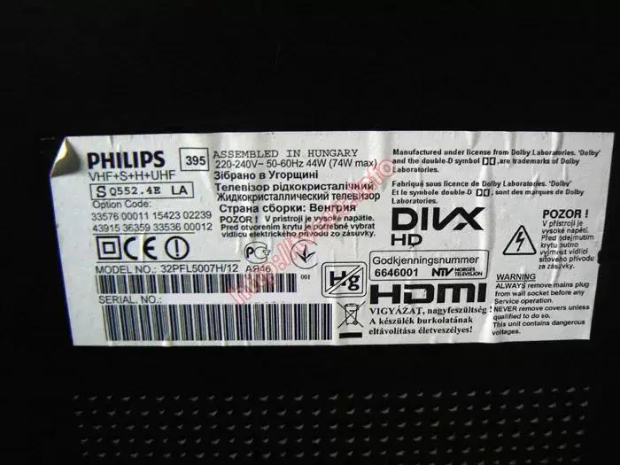 К нам поступил телевизор Philips 32PFL5007H, у которого повреждена 32-дюймовая матрица. Данная модель венгерской сборки, наделена функцией Smart TV, ЛЕД подсветкой, а также технологиями Pixel Plus HD и Perfect Motion Rate (PMR) 400 Гц. Этот телевизор со встроенным Wi-Fi модулем, у него хороший набор портов и разъемов, включая HDMI, USB, SCART, компонентный и композитный входы, VGA, AUX, выход на наушники.