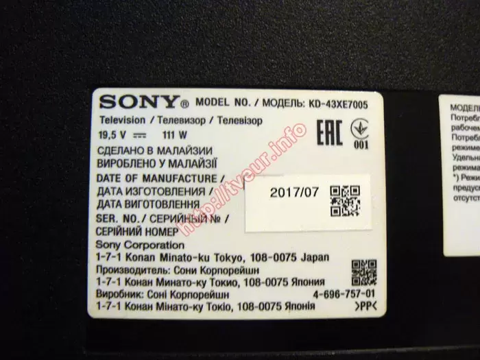 В телевизоре Sony KD-43XE7005, который поступил в наш сервисный центр очень серьезная неисправность, а именно, очень сильно повреждена 43-дюймовая матрица. От заказчика узнали, что проблема произошла совершенно случайно. При сборки вещей для переезда на другую квартиру, по неосторожности задели телевизор, который собирались упаковать для транспортировки, при этом он упал на тумбу экраном вниз. Когда телевизор подняли, сразу стало понятно, что он полностью вышел из строя и не пригодный для эксплуатации. Также при переезде был утерян внешний блок питания. Заказчику нужно, чтобы была выполнена диагностика, и если ремонт окажется рентабельным - замена матрицы Sony.