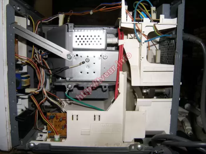Panasonic NN-ST556W - это современная, со стильным внешним видом инверторная микроволновая печь с турборазморозкой. Она вышла из строя, у нее сильно прогорела слюдяная пластина, в СВЧ отсутствует нагрев, она проработав какое-то время начинает отключаться. С таким набором неисправностей устройство поступило к нам в мастерскую, где всегда выполняется ремонт микроволновых печей, не зависимо от поломки. Эта кухонная бытовая техника с мощностью 1100 Вт и объемом духовки 27 литров. У нее большой поворотный стол, жаропрочное внутреннее покрытие, сенсорная система управления, а также пошаговый экран. Устройство поступило с лопнувшим магнитом на магнетроне 2M261-M32 JP, сильно прогоревшей слюдой (видно на фото № 2). Кроме того, внутренняя духовка микроволновки грязная, зажиренная, особенно вентиляционная решетка (можно увидеть на фото № 3 и 4), что не допустимо. Поскольку восстановить вышедшие из строя магнетрон и слюдяную пластину 125-80 мм не было возможности, ремонт микроволновых печей состоял в их замене. Наряду с этим возобновлена работоспособность ВВ цепей, для чего устройство пришлось разбирать. После вышеописанного ремонта все неисправности полностью устранены. Периодически ухаживать в дальнейшем!