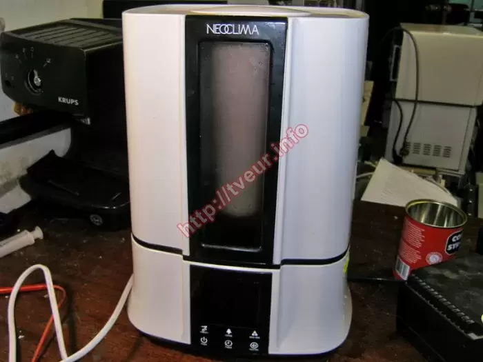 В увлажнителе NeoClima SPS-905 с потребляемой мощностью 38 Вт, площадью обслуживания 30 кв. м. и электронным типом управления отсутствует подача пара, а это значит, что гарантированно потребуется ремонт увлажнителей воздуха. Состояние устройства в целом удовлетворительное, при этом из строя вышел вентилятор. Поскольку вентилятор восстановлению не подлежит, пришлось заказать и поменять новый вентилятор 12 В. Помимо этого выполнена профилактика. Благодаря правильно проведенной диагностике и последующему ремонту, подача пара возобновлена.