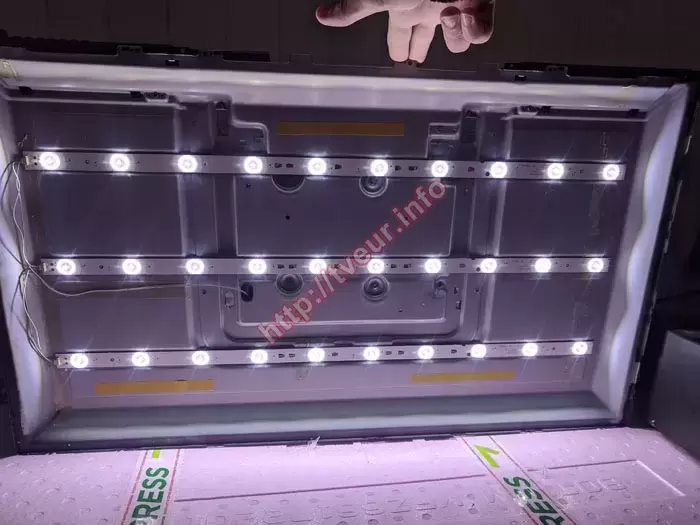 Первое, что было сделано, заказан и куплен новый комплект подсветки 315D10-07 (B) для замены. Когда его получили специалист снял неисправные стринги и установил новые. В результате все без исключения светодиоды светятся, изображение на экране появилось, оно с отличным качеством. Также телемастер проверил все настройки изображения и те, которые были на максимуме, немного понизил. Этот ремонт с положительным результатом с выдачей гарантии (включая новые детали).