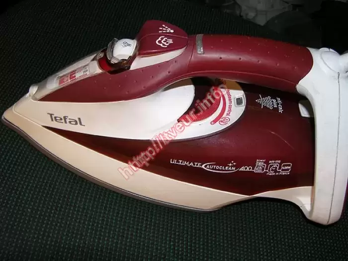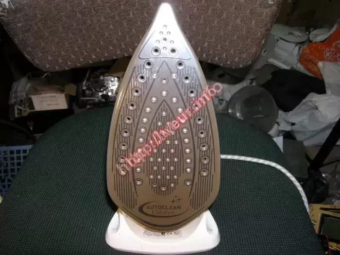 Утюг Tefal FV 9447 мощностью 2400 Вт. И паровым ударом 150 г/мин. был доставлен в наш сервисный центр, так как он протекает, не работает подошва. Мы выполняем ремонт утюгов с такой неисправностью. В целом состояние утюга неплохое, при этом потрескался силикон на подошве, носик погнут, предположительно после падения. Поскольку восстановить подошву не было возможности, была заказана и поменяна новая подошва TEFAL, выполнен ряд профилактических работ. После ремонта устройство полностью в рабочем состоянии. Клиенту рекомендовано использовать фильтрованную воду.