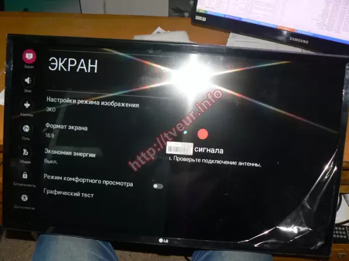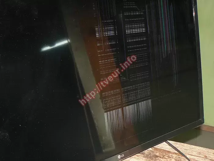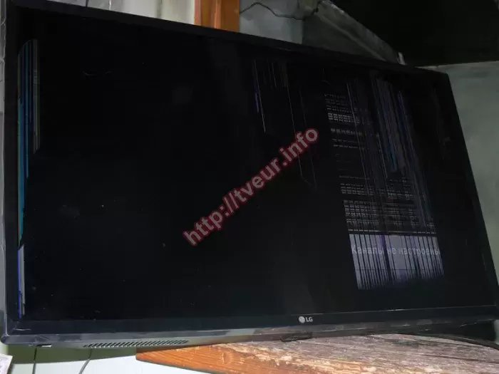На 32-дюймовой матрице LED телевизора LG 32LJ610V, который поддерживает функцию Smart TV, в результате не аккуратного использования появились трещины, полосы и другие механические повреждения. По этой причине необходим такой ремонт, как замена матрицы к телевизору. Устройство прислали из города Энергодар Запорожской области, оно хорошо упаковано в «родной» коробке от производителя. По телефону пользователь сообщил, что телевизор практически совершенно новый, его купили около полу года назад (год сборки апрель 2018). Он использовался на специальной тумбочке, которая достаточно низкая. Проблема случилась по вине кота, за которым гонялись дети, он налетел на телевизор и тот рухнул матрицей вниз. В результате на экране глобальные повреждения, возле верхней рамки виден скол, от него в разные стороны разошлись трещины, одна из них проходит через всю панель. Посередине, а также вдоль левой боковой рамки много вертикальных полос. Они разных цветов и разной длины. С правой стороны образовался достаточно широкий столбец, напоминающий растр, состоящий из многочисленных пересекающихся линий (отлично видно на фото №1 и 2). Остальная часть экрана залита черным цветом. При падении также в некоторых местах пострадала рамка, особенно левая боковая. Мы смогли заказать и купить новую матрицу для замены. Изначально была демонтирована разбитая панель, а на ее место сделана замена матрицы к телевизору с последующими настройками. На такой ремонт мы всегда выдаем гарантию, и данный случай не исключение.