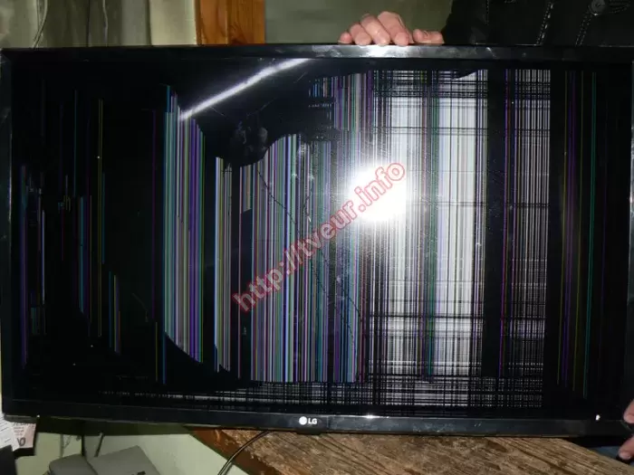 В нашу сервисную мастерскую из города Винница прислали ЖК телевизор с ЛЕД подсветкой - LG 32LJ610V, у которого очень сильно повреждена 32-дюймовая матрица, на ней трещины и другие механические повреждения. Заказчику необходимо, чтобы была выполнена замена матрицы ЛЕД телевизора LG. Данная модель собранная в Нидерландах в сентябре 2017 года поступила в родной упаковке. Она наделена самыми прогрессивными технологиями и функциями, в число которых входит Smart TV. Прежде, чем решиться на такой сложности ремонт, пользователь изучил информацию в интернете и решил, что это намного выгоднее покупки нового телевизора, который обойдется значительно дороже. Как оказалось, данная неисправность появилась вследствие падения, причем экраном вниз. В результате он испорчен окончательно и бесповоротно, по всей матрице многочисленные разноцветные вертикальные линии. Кроме того, на экране два скола, один возле верхней рамки. Второй — возле левой боков ой рамки. От сколов в разные стороны длинные тонкие трещины. В некоторых местах на экране видны растровые столбцы. Вдоль всей нижней рамки длинное серое растровое пятно. Рамка телевизора при падении не пострадала. Чтобы стала возможной замена матрицы ЛЕД телевизора LG, ее необходимо в первую очередь заказать и купить, причем в данном случае должны учитываться разные нюансы, это - диагональ, модель, версия, другие технические характеристики LG. Нам удалось купить подходящую матрицу, после этого снять разбитую и на ее место установить новую. Потом только были выполнены все необходимые настройки. На замену и новую деталь выдана гарантия.