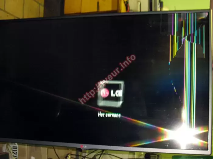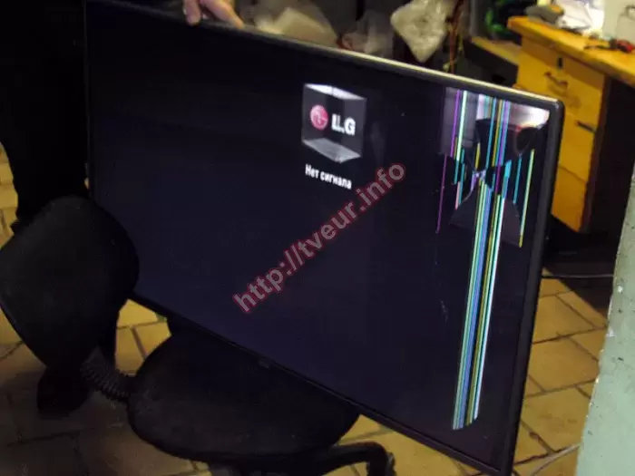 Такая проблема, как разбит экран в современном телевизоре, является достаточно распространенной. Кроме того, как свидетельствует практика, она случается вследствие механических воздействий, как правило ударов. В этом случае возможна только замена матрицы телевизора, которая обходится его владельцу дорого. Кроме того, такого плана ремонт должен выполняться в стационарных условиях сервисного центра, где для этих целей имеется специализированное оборудование. В нашу мастерскую был прислан телевизор LG 42LB561V с города Кировограда в неродной коробке от Samsung, у которого разбита 42-дюймовая матрица. В экран попали чем-то тяжелым, причем удар пришелся в верхний правый угол. В результате образовались трещины. В месте удара видны вертикальные разноцветные полосы, часть из которых вниз по матрице к нижней рамке. Весь экран залит черным цветом. По середине экрана просвечивается логотип фирмы LG, а также надпись «Нет сигнала». Данная модель телевизора с отличным углом обзора - 178°/178°, двумя ТВ-тюнерами (цифровым + аналоговым), а также разрешением 1920x1080 точек. В ней реализованы самые инновационные разработки, включая функцию Clear Voice II, с помощью которой в автоматическом режиме распознаются и усиливаются звуки человеческих голосов, что особенно ценно во время просмотра кинофильмов. Нами была заказана новая матрица, и впоследствии выполнена ее замена. Помимо этого, сделаны все необходимые настройки. Впредь эксплуатировать более аккуратно, не допускать ударов!