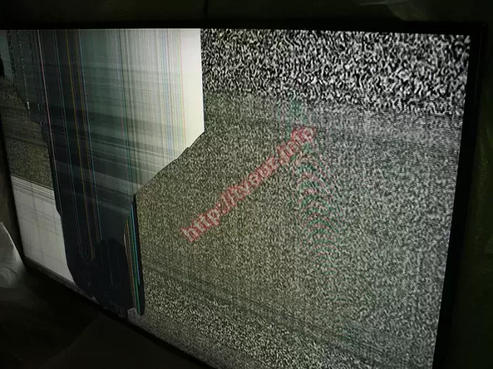 Как показывает практика любые механические воздействия на тонкую и хрупкую матрицу современного телевизора, приводят к тому, что требуется сложная и дорогостоящая замена разбитого экрана телевизора, которая может быть выполнена исключительно в стационарных условиях сервисного центра. В данном случае поступил 3D телевизор LG 55LF653V, 2015 года выпуска, с большой 55-дюймовым экраном, который очень сильно поврежден в результате падения с тумбочки. Данная модель наделена самыми прогрессивными технологиями и функциями, в число которых входит Smart TV (Смарт-платформа WebOS 2.0) и Wi-Fi. Одной из отличительных особенностей телевизоров от данного производителя является использование качественных IPS матриц, у которых широкие углы обзора (178°/178°). За качество изображения в телевизоре несет ответственность процессор изображения Triple XD Engine. У телевизора хороший набор разъемов, в число которых входят 3 x HDMI, 3 х USB 2.0 и другие. Во время осмотра телевизора стало понятно, что повреждения после падения насколько достаточно серьезные, что визуально вся матрица как бы поделена на части. Слева, возле нижней рамки образовалась дырочка небольшого размера, от которой во все стороны появились разного размера трещины. В этом месте панель залита черным цветом. Над ним большое растровое пятно, состоящее из многочисленных вертикальных полос разной длины и цвета. С левой стороны экран серый, на нем пересекающиеся полосы. Вся правая сторона покрыта серой рябью. Очевидно, что замена разбитого экрана телевизора на новую неизбежна. При этом, чтобы замена стала возможной, в первую очередь необходимо купить подходящую панель, при чем не только по диагонали или модели, но также должна учитываться версия. После того, как сняли испорченную панель, на ее место установили новую. Учитывая большую диагональ, а также характеристики матрицы (3D), этот ремонт был, дорогим, но результативным.