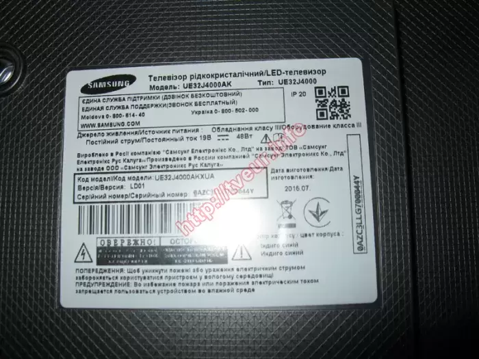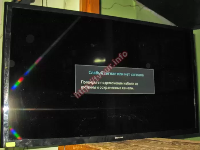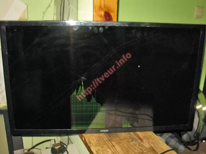 В телевизоре Samsung UE32J4000AK с LED подсветкой разбита 32-дюймовая (81.2 см) матрица. Это говорит о том, что гарантированно потребуется дорогостоящая замена матрицы телевизора, выполнить которую можно только в сервисном центре. Данная модель способна транслировать звук посредством собственной двухканальной аудиосистемы, мощность которой 10Ватт. Более того, производитель позаботился как о громкости, так и о качестве звучания. Акустика соответствует требованиям DTS Studio Sound технологии, которая используется при построении системы звучания в коммерческих кинотеатрах или театральных студиях. Этот современный телевизор 2016 года выпуска (производитель Россия) с разрешением 1366x768 пикселей (HD Ready). Осмотрев на приемке телевизор стало понятно, что по нему ударили, удар пришелся практически посередине экрана, ближе к левой рамке. От места удара в четыре стороны по всей матрице разошлись трещины. Между двумя нижними трещинами образовалось пятно зеленого цвета, по которому белые горизонтальные и вертикальные полосы. Чуть правее еще такое же зеленое пятно, но меньшего размера. Весь остальной экран черного цвета. Была заказана и заменена новая 32-дюймовая матрица. Это очень сложный ремонт, требующий внимательности, аккуратности и особых навыков, поскольку сама по себе матрица очень тонкая и хрупкая, потому одно неверное движение чревато негативными последствиями. После всех настроек этот телевизор с отличным качеством изображения. Использовать в дальнейшем более аккуратно, беречь от ударов!