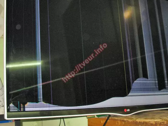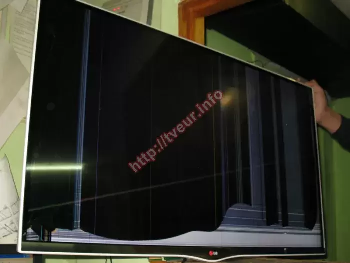 В 3D-телевизоре LG 42LA667V с поддержкой Smart TV и Wi-Fi разбита большая 42-дюймовая LED матрица. Как показывает многолетняя практика, с такой неисправностью возможна только лишь замена матрицы телевизора, которая выполняется нашими опытными телемастерами в стационарных условиях сервисной мастерской. Как объяснил заказчик, по экрану нечаянно ударили (левый нижний угол) и сразу на нем появилась одна большая трещина через всю матрицу. Внизу под трещиной экран светлого цвета, на котором много горизонтальных полос. Вверху над трещиной матрица черного цвета, на которой много светлых вертикальных и цветных полос. Данная модель телевизора с разрешением 1920x1080 точек. В ней используется пассивная 3Д технология, два ТВ-тюнера. Особенностью устройства является наличие полно экранного раздельного режима для двух игроков. Теперь, чтобы комфортно играть вдвоем не потребуется использование двух телевизоров. Это связано с тем, что игроки смогут видеть каждый свою картинку на большом одном экране. Все работы по замене матрицы телевизора, которую пришлось заказывать, выполнялись с использованием специального оборудования. Это сложный ремонт, поскольку для замены экрана необходимо полностью разбирать телевизор. После всех последующих настроек, изображение на экране высокого качества. В дальнейшем беречь экран от ударов, падений и попадания жидкости.