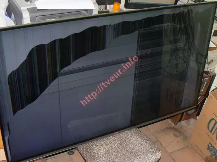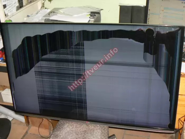 3D-телевизор LG 55UB950V с 55-дюймовой матрицей, 2015 года выпуска, поддерживает самые инновационные технологии, в том числе Smart TV и функцию Wi-Fi. В нем разбит экран (трещины), поэтому дорогостоящая замена матрицы телевизора станет неизбежной, выполнить которую достаточно сложно. Данная модель отличается Ultra HD качеством. Благодаря разрешению 3840х2160 точек обеспечивается четкое и очень яркое изображение. Это практически в четыре раза больше пикселей чем при Full HD разрешении, или в восемь раз больше чем HD. За качество звучания в этом телевизоре отвечает новая система Ultra Surround, с динамиками, создающими звуковую среду, способную погрузить зрителя в атмосферу, происходящую на экране. После попадания по экрану каким-то предметом (это правый верхний угол), на нем появились крупные трещины. Две длинные трещины «расползлись» через весь экран, между ними много вертикальных полосок разной ширины и длины. От удара вдоль правой боковой рамки матрица с более темным оттенком, на ней также отчетливо видны разноцветные линии. От трещины влево часть экрана светлого цвета, от середины влево - чуть темнее, дальше опять светлого (отлично видно на фото № 1). Темная образовавшаяся полоса постоянно перемещается по экрану (фото № 2). Замена матрицы телевизора выполнялась в стационарных условиях сервисного центра, для чего необходимо было демонтировать разбитый экран, и только после этого установить новую матрицу. Такой ремонт по замене экрана является достаточно сложным, и должен выполняться максимально аккуратно.