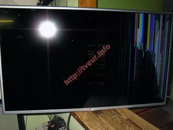 ЖК телевизор LG 39LB572V с 39-дюймовой матрицей и LED подсветкой (2014 года выпуска), наделен самыми прогрессивными технологиями, такими к примеру, как Smart TV. Пользователь имеет возможность свободно делится контентом между разными устройствами, не зависимо от того, находится ли он дома или за его пределами. В данном случае требуется дорогостоящая замена матрицы телевизора, которая в результате неаккуратного использования достаточно сильно разбита. Как объяснил пользователь, который доставил телевизор в наш сервисный центр, в экран попали тяжелым предметом, в результате возле правой боковой рамки посередине образовалась небольшая дырочка, от которой в разные стороны расползлись тонкие трещины. Между трещинами многочисленные разноцветные вертикальные полосы разной длины, которые занимают практически 1/3 экрана (хорошо видно на фото №3). Остальная часть матрицы черного цвета. И только посередине слабо просматривается полоса из горизонтальных линий. Чтобы стала возможной замена матрицы телевизора, его пришлось полностью разбирать. После этого вынимать старую разбитую и только потом установить новую. Такой сложный ремонт может быть выполнен только опытными телемастерами, располагающими специальной оснасткой. В данном случае потребуется максимальная аккуратность и сноровка, поскольку сама матрица очень тонкая и хрупкая, поэтому одно неверное движение может привести к непоправимым последствиям. Именно по этой причине такой ремонт должен выполняться в стационарных условиях. После всех последующих настроек, телевизор LG 39LB572V полностью рабочий.