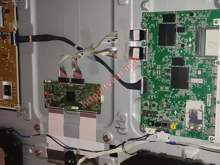 После получения телевизора в нашу мастерскую специалисты сразу приступили к визуальному осмотру и диагностике. В результате стало ясно, что даже при внешне незначительном повреждении потребуется серьезный и затратный ремонт , а именно, замена матрицы для телевизора. Механическое воздействие пришлось в нижнюю левую часть экрана, где образовался светящийся скол, а по левой боковой кромке матрицы проявились характерные вертикальные полосы различных оттенков. Центральная часть экрана при этом продолжала отображать изображение. Для точной оценки состояния устройства потребовалась его полная разборка. Мастер аккуратно удалил заднюю панель, предварительно выкрутив девять крепежных винтов, размещенных по периметру корпуса. Проведенная проверка электронных модулей показала, что все остальные элементы телевизора находятся в исправном состоянии. Таким образом, замене подлежит исключительно поврежденная матрица, что существенно упростило дальнейшие этапы восстановления.