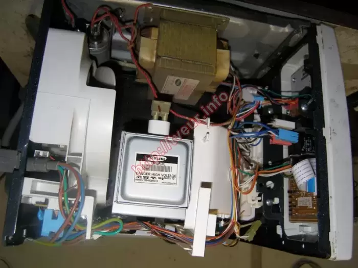В мультифункциональной микроволновой печи с грилем и конвекцией Samsung C105AFR разбито внутреннее стекло дверцы, угол дверцы треснут, не работают кнопки управления и переключатели режимов. Данная неисправность произошла после того, как устройство упало с высоты. В результате требуется ремонт микроволновых печей, который будет достаточно сложным. Данная модель наделена инновационной технологией Steam Clean, с помощью которой СВЧ печь практически самостоятельную выполняет очистку внутреннего объема, который составляет 28 литров. В этой кухонной бытовой технике используется плата управления RCS-SM100L-10 и магнетрон Samsung OM75P(31). Мастер, занимающийся ремонтом всех моделей микроволновок сделал заключение, что она в удовлетворительном состоянии, ее внутренняя духовка сильно зажирена и грязная, совсем скоро прогорит слюдяная пластина. Во время диагностики установлено, что из строя вышел волновод и плата управления. Исходя из этого ремонт микроволновых печей состоял чистке волновода. Заменена плата управления DE96-00259A, поскольку, вышедшую из строя восстановить не удалось. Кроме того, заменена кнопочная плата, слюда 105-115мм. Полностью отреставрирована дверца, заменено термостекло 310-190-4, для чего использовался термосиликон черного цвета. В дальнейшем эксплуатировать микроволновую печь максимально аккуратно и бережно, дверцей не хлопать, после приготовления блюд проветривать!