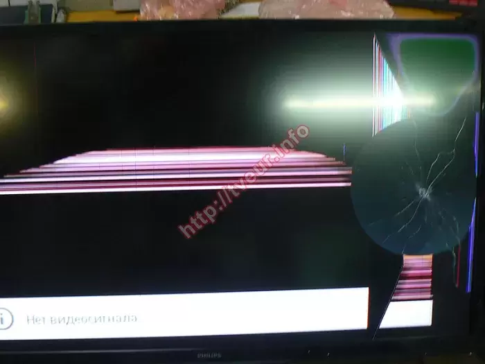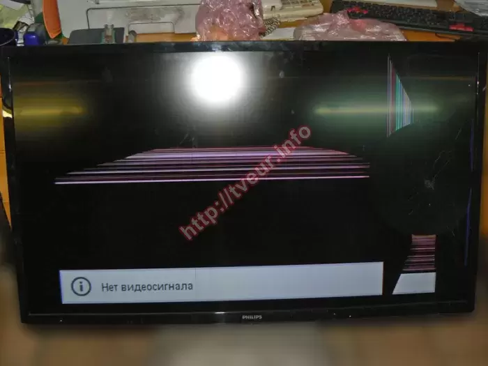 Когда на матрице современного телевизора появляются даже незначительные дефекты, такие как, дырочка, скол или др., это свидетельствует о том, что есть два пути решения проблемы - покупка нового телевизора или же можно поменять матрицу на телевизоре, что также обойдется не дешево. В данном случае проблема с 42-дюймовым Smart TV телевизором Philips 42PFL4007H/12, у которого очень сильные повреждения, появившиеся в следствии того, что по экрану был сильный удар. Из слов пользователя стало понятно, что во время игры ребенок ударил по матрице каким то предметом (предположительно игрушкой), как результат нужен сложный и дорогостоящий ремонт. Этот телевизор, который наделен встроенным Wi-Fi модулем, прислали из города Мариуполь, упакованным в пенопласт и «родной» упаковке. После удара, который пришелся возле правой боковой рамки появилась небольшая, но светящаяся дырка, в разные стороны от которой пошли тонкие трещины. Визуально, эти трещины находятся в черном круге, у которого правильная форма. Сверху над кругом и внизу много разноцветных полос, в верхнем правом углу образовалось большое пятно. Вся середина матрицы в горизонтальных бело-красных полосах разной длины. Вдоль нижней рамки толстая белая полоска, на которой можно прочитать надпись «Нет видеосигнала». Остальная часть панели залита черным цветом. Чтобы поменять матрицу на телевизоре в первую очередь ее необходимо заказать и купить. Проблема усугублена тем, что первая заказанная матрица не подошла по версии, поэтому пришлось ждать, когда придет другая, которую опять заказывали. В результате нам удалось поменять новую панель взамен той, которая разбита. Сделаны настройки, выдана гарантия.