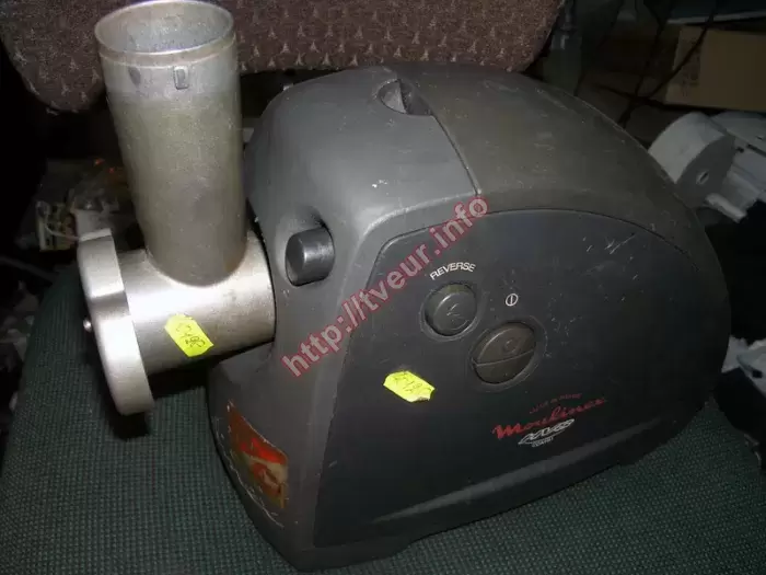 Электромясорубка Moulinex ME 611 вышла из строя, во время работы у нее сильная вибрация, появился треск и запах горелого. В таком состоянии она доставлена в наш сервисный центр, где выполняется ремонт электромясорубок, не зависимо от сложности неисправности. Эта бытовая кухонная техника с пластиковым корпусом и загрузочным лотком наделена мощностью 1700 Вт и производительностью 1.7 кг/минуту. У нее имеется защита от перегрузок, а также функция «Реверс». Мясорубка поступила в ужасном состоянии, она очень грязная, причем как корпус, так и внутри (отлично видно на фото № 1), внутри вся в потеках, двигатель ржавый, подшипник развалился (шарики разлетелись по всей мясорубке), произошел обрыв роторных катушек, видны тараканы. Разобрав ее полностью (фото № 3), мастер сделал заключение, что проблема возникла одновременно в нескольких узлах (из строя вышли двигатель, редуктор, ножи). Такие симптомы говорят о том, что ремонт электромясорубок будет не простым. В результате пришлось поменять новый двигатель «Moulinex» SS-989478. Помимо этого дальнейший ремонт состоял в заточке ножей, чистке этой электромясорубки от грязи и тараканов. Вибрация пропала, треск и запах тоже. В дальнейшем не перегружать, с периодичностью ухаживать, начать борьбу с тараканами.