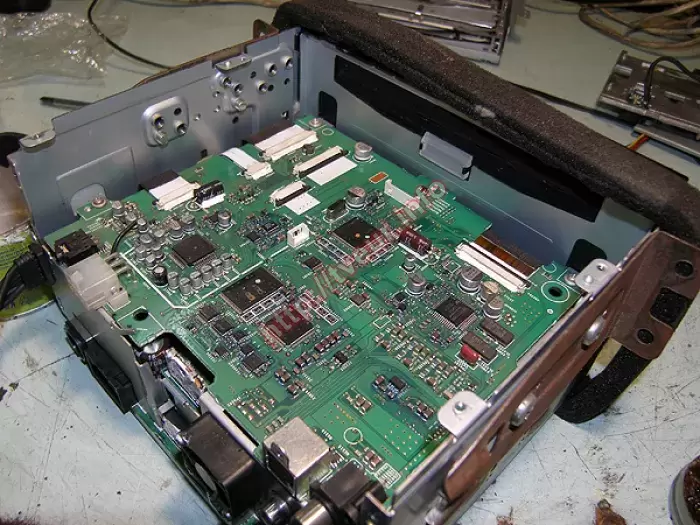 При новом включении не оставляет программу в DVD автомобильный монитор MultiChina (LCD+DVD), с такой проблемой заказчик обратился в наш сервисный центр. Мы всегда выполняем ремонт автомагнитол, а также любой другой автоэлектроники. Со слов пользователя узнали, что раньше, при просмотре диска, мог выключить, потом опять включить dvd , а теперь при включении прибор переходит в ТВ- не сохраняет. Кроме того, оторван зеленый провод, но он не знает откуда. Поскольку из строя вышла MAIN BOARD, ремонт состоял в ее восстановлении. Выполнена профилактика, перепрошивка flesh, eeprom main board. Заменены некоторые детали, в т.ч. 24с32. Зеленый провод это антенна - все в порядке, скорей всего был просто приклеен к корпусу. Данный пример, хорошее подтверждение тому, что если из строя выходит автомагнитола или др. техника, стоит обратиться к специалистам.