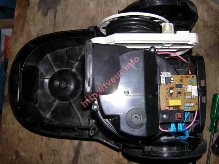 Безмешковый пылесос с контейнером ElectroLux ZTF 7615, в котором используется плата регулятора SL-1800 плохо работает, в нем сильно гудит мотор, кроме того, нет тяги. С такой неисправностью ремонт пылесосов будет не только сложным, но и дорогим. Заказчик, который доставил его в нашу сервисную мастерскую пытался самостоятельно решить проблему, но у него ничего не получилось. Эта модель с циклоническим фильтром, который максимально прост в обслуживании. Она создана для выполнения сухой уборки и наделена потребляемой мощностью 1800 Вт. У пылесоса универсальная парковка, автоматическое сматывание шнура, а также регулировка мощности на корпусе. К особенностям модели можно отнести наличие удобного индикатора загрязнения фильтра, легкую очистку контейнера, мягкие, очень легко маневрирующие колеса, а также удобную для переноски ручку. Несмотря на то, что общее состояние этой бытовой техники хорошее, неисправность достаточно серьезная. Поскольку в двигателе развалилась крыльчатка (отлично видно на фото № 5). В данном случае ремонт пылесосов состоял в замене нового двигателя, так как вышедший из строя восстановить не было возможности. Кроме этого сделана чистка устройства. После ремонта этот пылесос работает хорошо, без лишнего шума. Пользователь предупрежден о том, чтобы в дальнейшем без фильтров пылесос не включать, периодически за ним ухаживать.