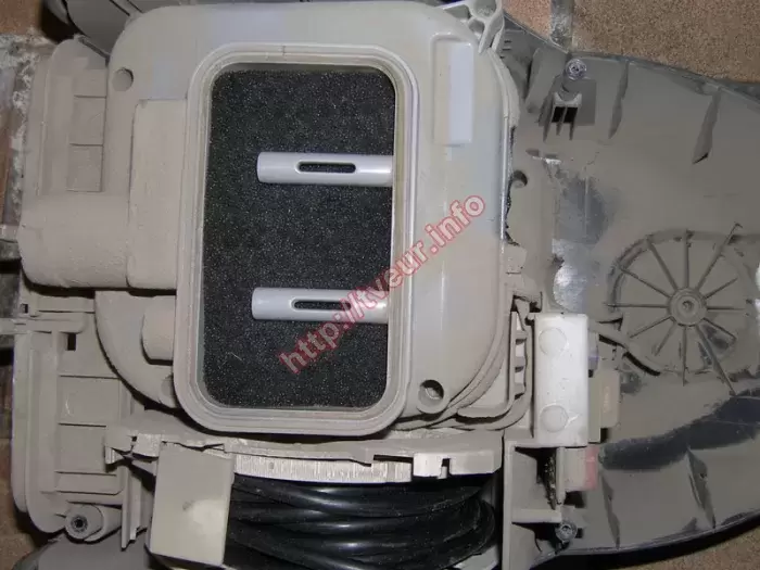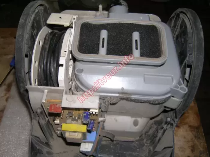 Контейнерный пылесос, предназначенный для выполнения сухой уборки LG VK72101R плохо работает, появился сильный гул при включении, кроме того не сматывается шнур. По этой причине требуется срочный ремонт пылесосов, за который взялись специалисты нашей компании. Данная бытовая техника с системой фильтрации ELLIPSE Cyclone, наделена потребляемой мощностью 2000 Вт, мощностью всасывания 340 Вт, а также выпускным фильтром HEPA 13. Объем пылесборника у этого пылесоса с вертикальной парковкой - 1,4 литра, а уровень шума составляет 78 дБ. Пылесос поступил в ужасном состоянии, внутри он покрыт толстым слоем цементной пыли (можно посмотреть на снимках № 4 и 5). что является следствием уборки во время проведения ремонтных работ. Кроме того, начали хрустеть подшипники, выходной НЕРА фильтр пришел в негодность. При этом главной проблемой является выход из строя двигателя, работоспособность которого возобновить не возможно. В результате потребуется сложный и дорогостоящий ремонт пылесосов, который состоял в его чистке, а также замене нового двигателя «LG» YDC01-8 P\NO;EAU41711807 (смотреть фото № 6). Пользователь предупрежден о том, что пылесосом нельзя убирать никакой строительный мусор (использовать строго по назначению), иначе опять ремонта не избежать. Кроме того, в скором будущем необходимо менять НЕРА фильтр.