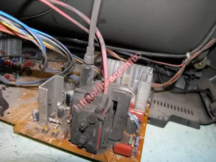 Проблема в данном случае была с усилителем мощности звука, понадобилась замена микросхемы TDA2009. Это очень распространенная проблема для ЭЛТ, подобный ремонт телевизоров был выполнен также в телевизоре Samsung KS1A21D9.