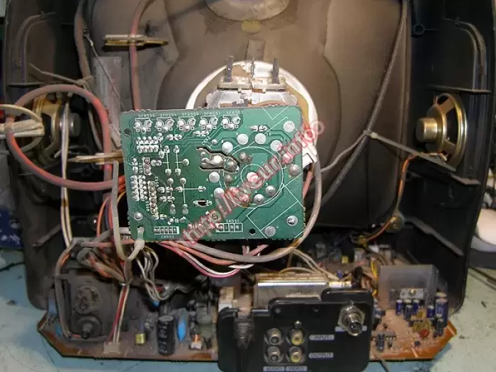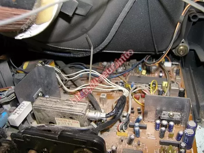 Кроме горизонтальной полосы и выломанного гнезда в ТВ еще не все кнопки управления работают. Ремонт телевизоров состоял в замене антенного гнезда и микриков кнопок, ИМС КР, заменена микросхема ТА 8403К в модуле кадровой развертки.