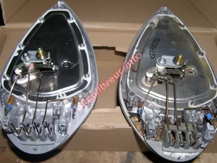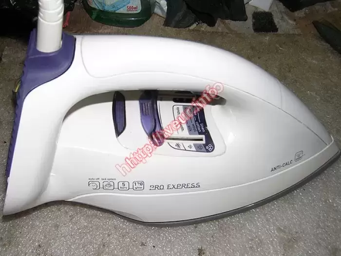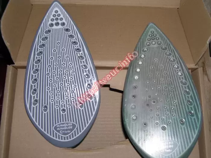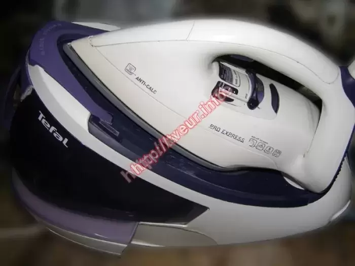 В утюге с парогенератором Tefal GV 8330 мощностью 2200 Вт стерлось керамическое покрытие на подошве, пользователю нужно, чтобы срочно был выполнен ремонт утюгов. Состояние утюга удовлетворительное, частично стерлось керамическое покрытие, подошва сильно запылена, носик утюга сколот, кнопка сброса стерлась, частично отсутствует оплетка на шланге. В данном случае ремонт состоял в полной замене подошвы Tefal, а также профилактике устройства в целом. Пользователю рекомендовано использовать только фильтрованную воду, агрессивные средства не применять.