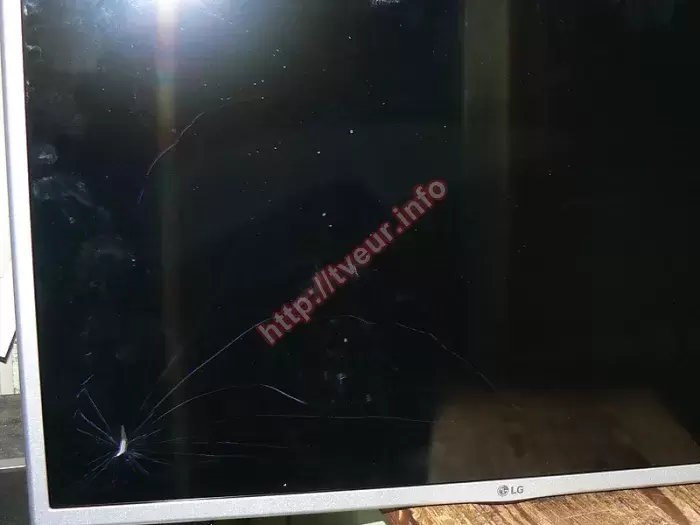 В сервисную мастерскую поступил 32-дюймовый LED телевизор LG 32LH570U, который относится к линейке 2016 года и наделен такими современными технологиями, как Smart TV и Wi-Fi. Завяленная неисправность - разбит экран. Пользователю нужна срочная замена матрицы у телевизора. Телевизор прислали из г. Староконстантинов Хмельницкой области, упакованным в коробку от производителя, в которой еще были шнур и блок питания. Данная модель работает под управлением мощного процессора Triple XD, который является передовой разработкой компании, гарантирующей совершенство цвета, контраста и четкости картинки. Как оказалось на матрице достаточно серьезные механические повреждения. В нижнем левом углу видна больших размеров продолговатой формы светящаяся дырка. Она появилась после того, как ребенок пользователя ударил по экрану сломанной пластмассовой линейкой (отлично видно на фото №1). Изображение сразу пропало, а наряду с дыркой появилось очень много мелких, но глубоких трещин. Несколько трещин, которые светятся, достаточно длинные, они проходят через весь экран и заканчиваются посередине нижней и верхней рамок. Чтобы стала возможной замена матрицы у телевизора, в первую очередь необходимо было заказать и купить идентичную панель, той же модели, версии, диагонали. Только после этого возможен ремонт по замене. Сделаны настройки изображения. Заказчику выдана гарантия. Беречь от ударов, падений и других механических воздействий, такие рекомендации были даны заказчику телемастером!