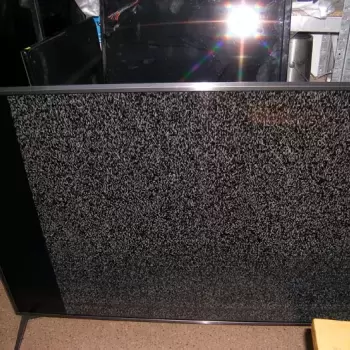 В сервисный центр поступил телевизор LG 75UJ657A с серьезным механическим повреждением экрана. По словам владельца, во время активной игры дети случайно задели устройство, в результате чего на экране появились трещины и радужные разводы, а затем изображение полностью исчезло. После этого телевизор перестал реагировать на сигналы, картинка не выводилась вовсе, хотя подсветка и звук сохранялись. Так как повреждения матрицы носят физический характер, их устранение невозможно без ее полной замены.