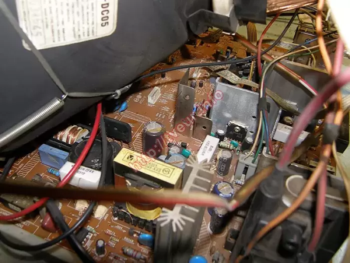 Не горит индикатор, отсутствует звук и управление в ЭЛТ телевизоре, но при этом исправны кадровая и строчная развертки. В данном случае был произведен ремонт телевизоров, а именно заменен кварцевый резонатор, подающий сигнал на ТДКС.