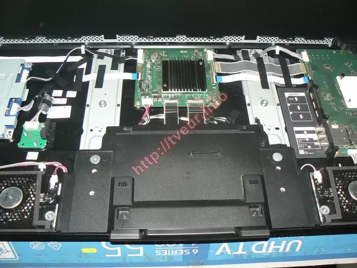 Этот телевизор в хорошем состоянии, несмотря на повторные услуги по ремонту телевизоров. У него аккуратный корпус и рамка, на которых отсутствуют механические повреждения. После полной разборки телевизора и проведенной углубленной диагностики стало понятно, что ремонт будет не простым, поскольку неисправность произошла одновременно в 2 модулях - DSP BOARD и цепях питания.