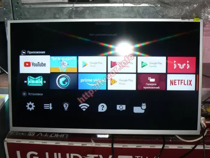 Первоначальный осмотр показал, что по причине падения на пол на экране около верхней рамки появилась небольшого размера дырка, здесь же тонкие трещины разной длины. Картинка на экране нет, он полностью темного цвета. Несмотря на то, что механических повреждений не так много, при этом без диагностики ЛЕД телевизора не обойтись, так как при падении могли выйти из строя другие составляющие, включая модули, шлейфы, платы, подсветку и так далее. С помощью диагностики удалось установить, чтоиз строя вышел разъем шлейфа матрицы, поэтому нужна не только замена разбитой матрицы, но и его ремонт. О результатах проведенной диагностики ЛЕД телевизора сообщили клиенту, который решил, что намного выгоднее выполнять ремонт, чем покупать новый телевизор.