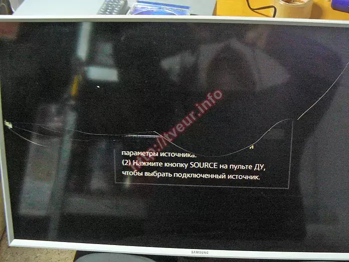 На приемке заказчик рассказал, что проблема возникла после того, как по экрану ударили. На нем сразу же появилась трещина, в некоторых местах картинка стала слишком тусклой, а также слышно, что внутри телевизора что-то болтается. Предположительно отбиты линзы светодиодов, потому потребуется также ремонт подсветки, что должна подтвердить диагностика для телевизора.