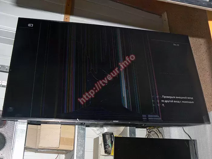 Телевизор Sony KD55XF9005, у которого разбита 55-дюймовая матрица поступил в наш сервисный центр из г. Черноморск Одесской области. Заказчику требуется замена экрана на телевизоре, который пришел в негодность после того, как по нему был сильный удар. По телефону узнали от пользователя, что телевизор висел на стене в гостиной, при этом это не помешало разбить матрицу, на которой сразу же появилось множество разных механических дефектов. Заказчику важно, чтобы был выполнен ремонт, поскольку его полностью устраивает данная модель, поэтому покупать новый телевизор в планы не входит. Мы никогда не отказываем своим клиентам в замене экрана на телевизоре, поэтому приняли его в работу.