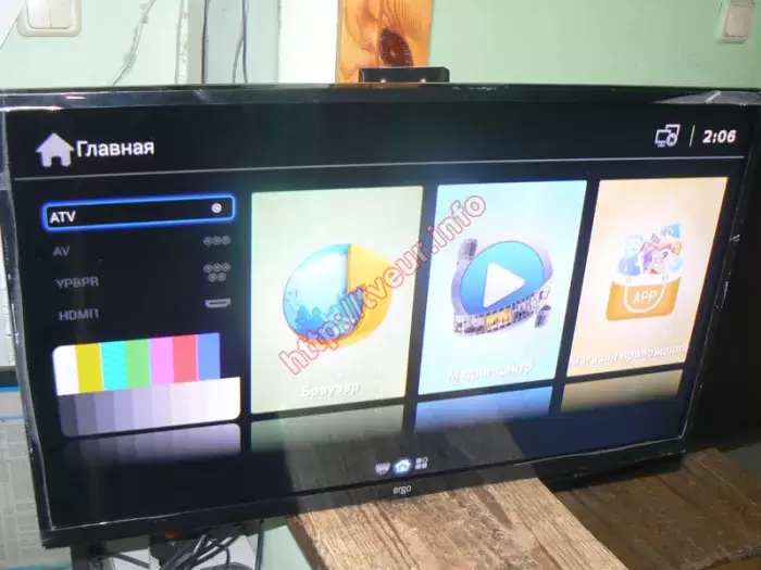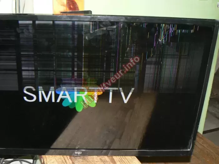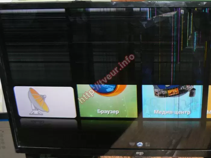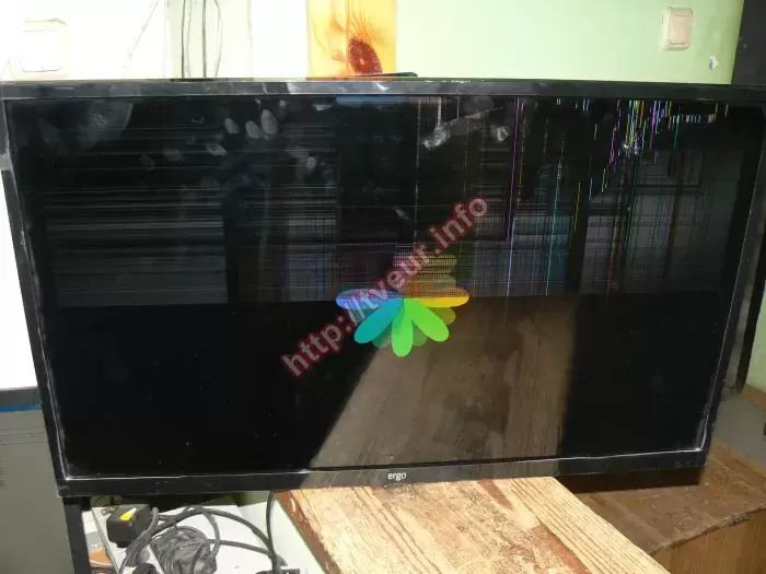 В 32-дюймовом LED телевизоре Ergo LE32CT2500AK образовались трещины на экране, поэтому пользователь попросил заменить матрицу на телевизоре в сервисной мастерской. Данная модель с поддержкой функции Smart TV, работает под управлением операционной системы Android 4.4. Телевизор стал обладателем экрана с разрешением 1366х768 точек, частотой развертки 60 Гц. За хорошее качество объемного звучания несут ответственность два динамика по 6 Ватт каждый, с поддержкой технологии NICAM А2. Телевизор работает на базе мощного процессора ARM Cortex-A7. Телевизор можно просматривать не только в аналоговом, но и в цифровом телевещании. Для того, чтобы заменить матрицу на телевизоре имеются все основания, поскольку в результате удара появилось много мелких трещин в правом верхнем углу, между которыми продольные разноцветные полоски разной длины. Экран условно разделен на две половины, нижняя его часть черного цвета. Верхняя больше похожа на растр. Посередине осталась видна часть заставки (отлично видно на фото № 1 и 3). Чтобы заменить любой диагонали матрицу на телевизоре (г. Киев) требуется не только большой опыт работы, но также наличие специального оборудования. Поскольку матрица, которую будут устанавливать является очень тонкой и хрупкой, поэтому одно неправильное действие может навсегда вывести ее из строя. В данном случае замена матрица на телевизоре была результативной, сделаны также все необходимые настройки.