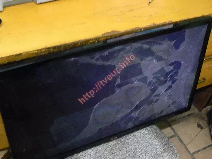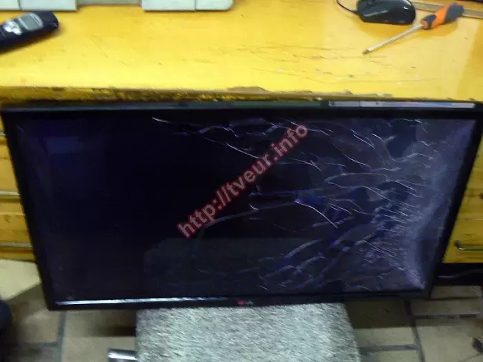 В сервисную мастерскую поступил 32-дюймовый LED телевизор LG 32LN575V с очень сильно поврежденной матрицей. Этот Smart TV телевизор с поддержкой функции Wi-Fi собран в Польше в 2013 году, в нем используется процессор Dual Core, отвечающий за высокое качество изображения. Пользователь попросил срочно заменить матрицу на телевизоре LG, а также объяснил, что данная неисправность появилась после того, как устройство упало с высоты. В результате на экране огромное количество трещин, они практически везде, причем разной формы, длины и глубины. Наибольшее их скопление с правой стороны. Между трещинами образовались светлые пятна, а это значит, что в данных местах матрица отслоилась. Самое большое такое пятно вдоль всей правой боковой рамки. Еще одно круглое, достаточно больших размеров, посередине экрана (хорошо видно на фото № 2). Мы можем заменить матрицу на телевизоре LG, но первоначальным этапом является ее покупка. Причем с учетом размера диагонали и модели. После этого ремонт состоит в демонтаже разбитой панели, причем данный этап максимально важен, поскольку снять матрицу нужно очень аккуратно, чтобы не повредить остальные детали телевизора. Только после этого выполняется замена нового экрана и последующие настройки. В данном случае этот сложный и дорогостоящий ремонт был результативным, заказчику выдана гарантия, а также даны разъяснения и рекомендации по дальнейшему использованию этого телевизора от известного производителя LG.