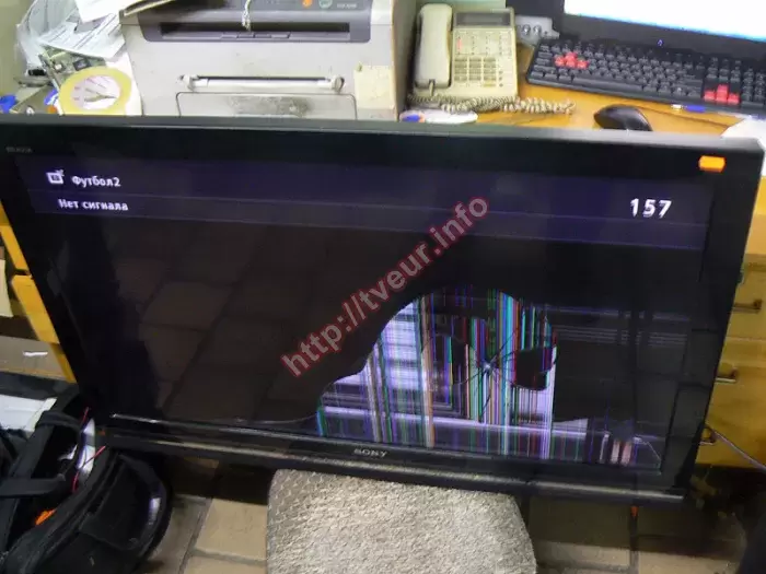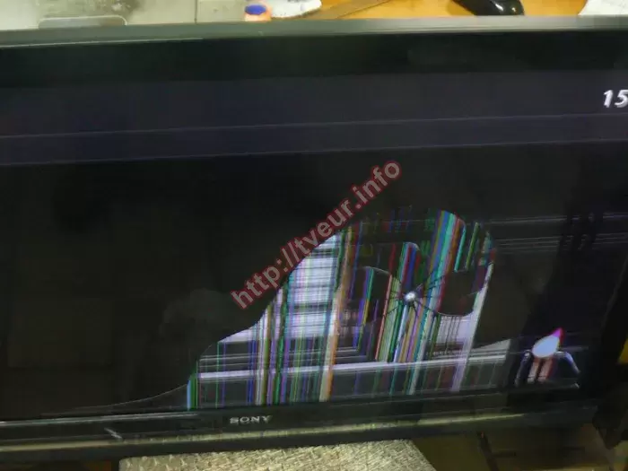 В телевизоре Sony KDL-40W5500, который изготовлен в 2009 году разбита матрица LTY400HF05, но прежде чем ее заменить, необходимо купить экран для телевизора нужной модели и соответствующей диагонали. Эта модель с разрешением 1920x1080 точек, яркостью 500 кд/м² и динамической контрастностью 100000:1. Угол обзора равен 178°. За качество объемного звука в телевизоре отвечает акустическая система с выходной мощностью 10 Вт на каждую из двух колонок. Кроме того, для его улучшения применена технология Dolby Digital и S-Force Front Surround. После предварительного осмотра стало понятно, что матрица очень сильно испорчена. В результате удара на ней образовалась небольших размеров дырочка, от которой во все стороны много мелких трещин в виде цветка. Над ними еще одна большая трещина, вниз от которой множественные вертикальные и горизонтальные разноцветные линии, напоминающие цветной растр. Вдоль верхней рамки светлая полоса, разделенная белой линией. Остальная часть панели черного цвета. Нами куплен экран для телевизора, демонтирован разбитый, а на его место установлен новый. Все работы выполнялись телемастерами с большим опытом работы, а для его осуществления использовалось специальное оборудование. Такой ремонт, когда необходимо купить и поменять разбитую панель относится к разряду сложных.