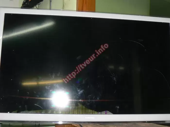 В Smart TV телевизоре Samsung UE32H4510AK (ОС Tizen), который собран в 2014 году, разбита 32-дюймовая матрица, на ней много трещин, которые появились в результате двойного удара. С такой неисправностью гарантированно потребуется сложный ремонт, так как будет заменена матрица телевизора купить которую необходимо заранее, подобрав нужную модель и диагональ. Данная модель наделена такими функциями, как телетекст, таймер "Сон", таймер включения. В ней используется беспроводные коммуникации Wi-Fi, динамическая Mega DCR контрастность, а также LED подсветка. Как объяснил заказчик, по неосторожности в матрицу попали какими-то предметами, в итоге сразу появились трещины, причем их много, они по своей форме чем-то напоминают цветы. Эти трещины расползлись по всему экрану, они длинные и короткие. Кроме того, на нем образовалось много полос разной длины зеленого цвета. Вдоль нижней рамки большое белое пятно неопределенной формы. На нем просматриваются горизонтальные и вертикальные линии. Нами заказана новая матрица телевизора купить которую было не так просто. В результате демонтажа испорченной панели и последующей замены новой детали, телевизор полностью в рабочем состоянии. Сделаны все работы по настройке ТВ. На ремонт, новую матрицу, которую пришлось купить, выдана гарантия.
