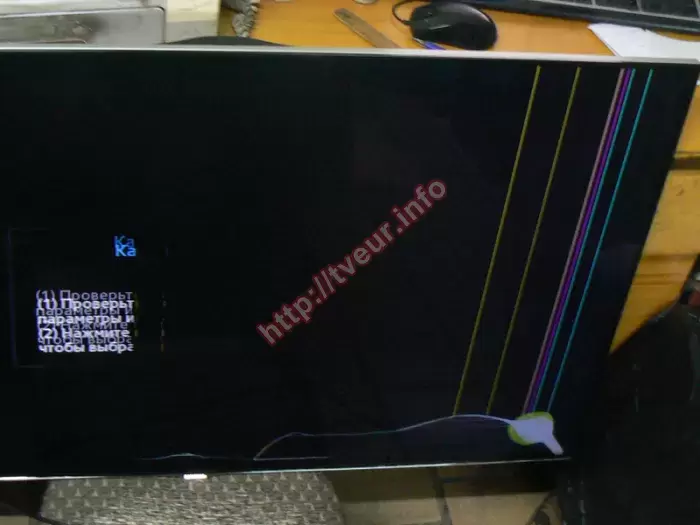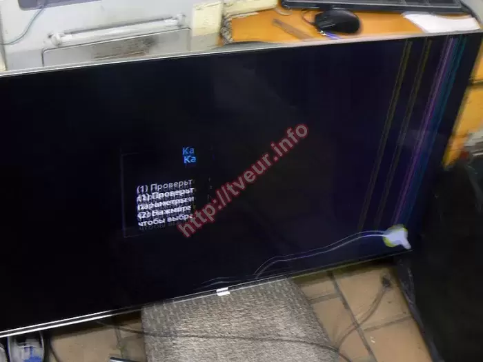 В 3D телевизоре (год изготовления 2013) - Samsung UE46F8000 с LED подсветкой, поддержкой Smart TV и Wi-Fi после падения треснула большая 46-дюймовая матрица. С такой проблемой возможно купить матрицу телевизора с заменой в сервисной мастерской, с чем полностью согласился заказчик. Данная модель с Mega Contrast, широким набором разъемов (4 HDMI, 3 USB). Благодаря сервису Samsung Smart Hub, создается совершенно фантастическая среда для развлечений. В данном случае возможна исключительно замена экрана, который после падения сильно поврежден механически, рамка при этом осталась целой. От правого нижнего угла вдоль нижней рамки пошла длинная толстая трещина. Кроме того, в углу образовалось светлое небольшое пятно круглой формы. Вверх от трещины видны шесть вертикальных линий разного цвета. Посередине экрана осталась часть заставки, которая двоится (отлично видно на фото № 1 и 2). С такой неисправностью выход имеется, можно купить матрицу телевизора с заменой, которую выполнят опытные телемастера, работающие в стационарных условиях сервисного центра. Для выполнения такой сложности ремонта гарантированно потребуется специальное оборудование. После того, как была заказана и куплена новая матрица, демонтировали треснутую, а на ее место установили новую с последующими настройками. При дальнейшей эксплуатации беречь телевизор от падений, толчков и ударов.