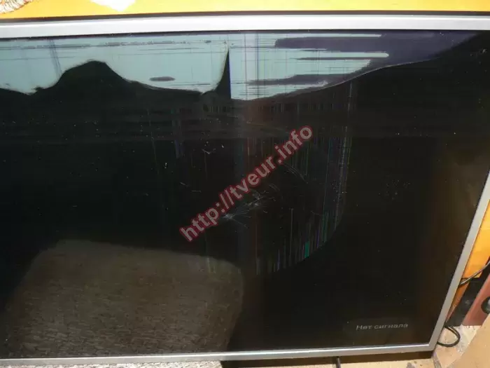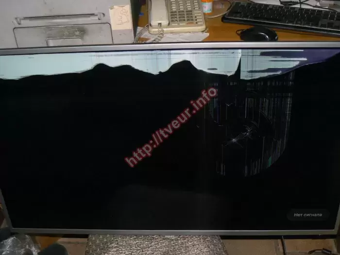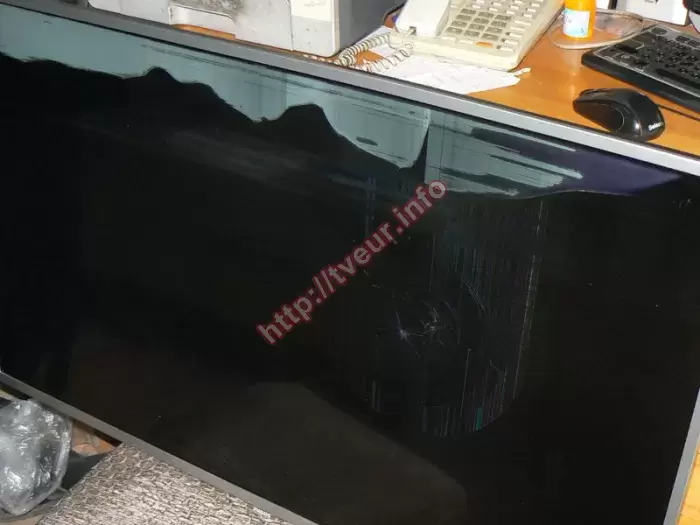 К нам в сервисный центр доставлен современный телевизор Philips 43PUS6501/12, у которого треснула большая 43-дюймовая матрица. Пользователь попросил, чтобы была выполнена срочная замена стекла матрицы телевизора. Данная модель, собранная в Польше в 2016 году наделена самыми инновационными технологиями и функциями. Насладиться качественной картинкой 4K Ultra HD и оценить уникальные домашние развлечения с Android TV теперь не проблема. Телевизор с поддержкой Smart TV, Wi-Fi, в нем используется мощный процессор изображения Quad Core. Осмотрев устройство на приемке стало понятно, что без замены стекла матрицы телевизора не обойтись, поскольку оно сильно испорчено. Вследствие механического воздействия на экране образовалась дырочка, вокруг которой трещины. Между ними очень много разноцветных полос разной длины. Данная часть матрицы напоминает «северное сияние» (можно увидеть на фото № 2, 3, 4). Вдоль всей верхней рамки тянется пятно светлого цвета, на котором также просматриваются линии. Остальная часть стекла черного цвета. С такой неисправностью ремонт может состоять только в замене новой панели. Для этого нужно аккуратно сеять разбитую деталь, а на ее место установить новую. В данном случае ремонт оказался с положительным результатом. Сделаны нужные настройки.