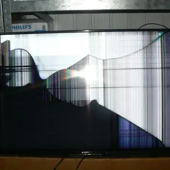 До сервісного центру надійшов телевізор Sony KD-43XF7005 із серйозним механічним пошкодженням екрана. 43-дюймова панель має значні тріщини та дефекти практично по всій поверхні, через що зображення повністю відсутнє. У подібних випадках єдиним ефективним рішенням є заміна матриці в телевізорі, оскільки відновити пошкоджену панель неможливо.
