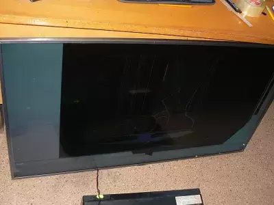 Заміна LED матриці телевізора є для нашої майстерні звичною та добре відпрацьованою процедурою, тому ми без вагань взялися за відновлення пристрою. Після первинного ввімкнення телевізора було очевидно, що відновлення без повної заміни екрана неможливе, оскільки матриця з численними механічними пошкодженнями. В нижній частині та по краях дисплея збереглися окремі фрагменти картинки. Безпосередньо над логотипом Samsung зафіксовано місце удару гострим предметом, унаслідок чого на матриці утворився невеликий скол. Від цієї точки в різні боки розійшлися довгі та глибокі тріщини, між якими численні кольорові вертикальні смуги. У зоні пошкодження помітна витягнута пляма сірого відтінку, що свідчить про порушення структури матриці. Окрім цього, вздовж лівої бічної рамки спостерігалася широка світла смуга, а з правого боку аналогічна, однак меншої ширини. Такі дефекти є типовими ознаками серйозного механічного пошкодження панелі. Після повного розбирання телевізора та проведення поглибленої діагностики встановлено, що всі інші модулі перебувають у справному стані. Блок живлення, основна плата Main Board, плата T-con, система LED підсвітки та інші елементи працюють без зауважень. Це підтвердило доцільність заміни матриці як оптимального способу відновлення роботи телевізора.